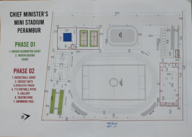 எருக்கஞ்சேரி நெடுஞ்சாலையில் முதலமைச்சர் சிறுவிளையாட்டு அரங்கம் (Mini
