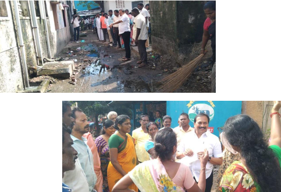 பெரம்பூர் தொகுதி மல்லிப்பூ காலனி குடிசை மாற்று வாரிய குடியிருப்பில் ஆய்வு செய்து சீரமைக்கும் பணிகளை உடனே மேற்கொள்ளுமாறு நகர்புற வாழ்விட மேம்பாட்டு வாரிய அதிகாரிகளிடம் கேட்டுக்கொண்டேன்