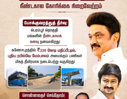 மாண்புமிகு தமிழ்நாடு முதலமைச்சர் கழக தலைவர் M. K. Stalin அவர்களின் நல்லாட்சியில், மாண்புமிகு துணை முதலமைச்சர் Udhayanidhi Stalin அவர்களின் வழிகாட்டுதலின்படி, பெரம்பூர் சட்டமன்ற தொகுதியில்…
