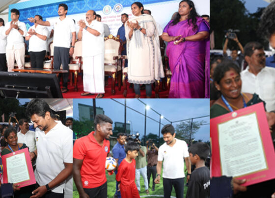 மூர்த்திங்கர் நகர் திட்டப்பகுதி 2-இல், தமிழ்நாடு நகர்ப்புற வாழ்விட மேம்பாட்டு வாரியம் சார்பில் ரூ.88.02 கோடி மதிப்பில் கட்டப்பட்டுள்ள 648 குடியிருப்புகளையும், அங்கு அமைக்கப்பட்டுள்ள கால்பந்து மைதானத்தையும்…