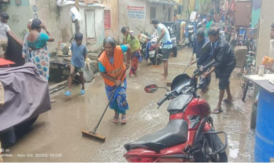 ஆர்.ஆர்.நகரில் மிக்ஜாம் புயல் காரணமாக சூறைக்காற்றுடன் பெய்துவரும் கனமழையால் பாதிக்கப்பட்ட மக்களை சந்தித்து, அவர்களுக்கு பாதுகாப்பாக இருப்பதற்கு நிவாரண முகாம்களில் அவர்களுக்கு உணவு ஏற்பாடுகள் செய்யப்பட்டது. தங்கவைத்து